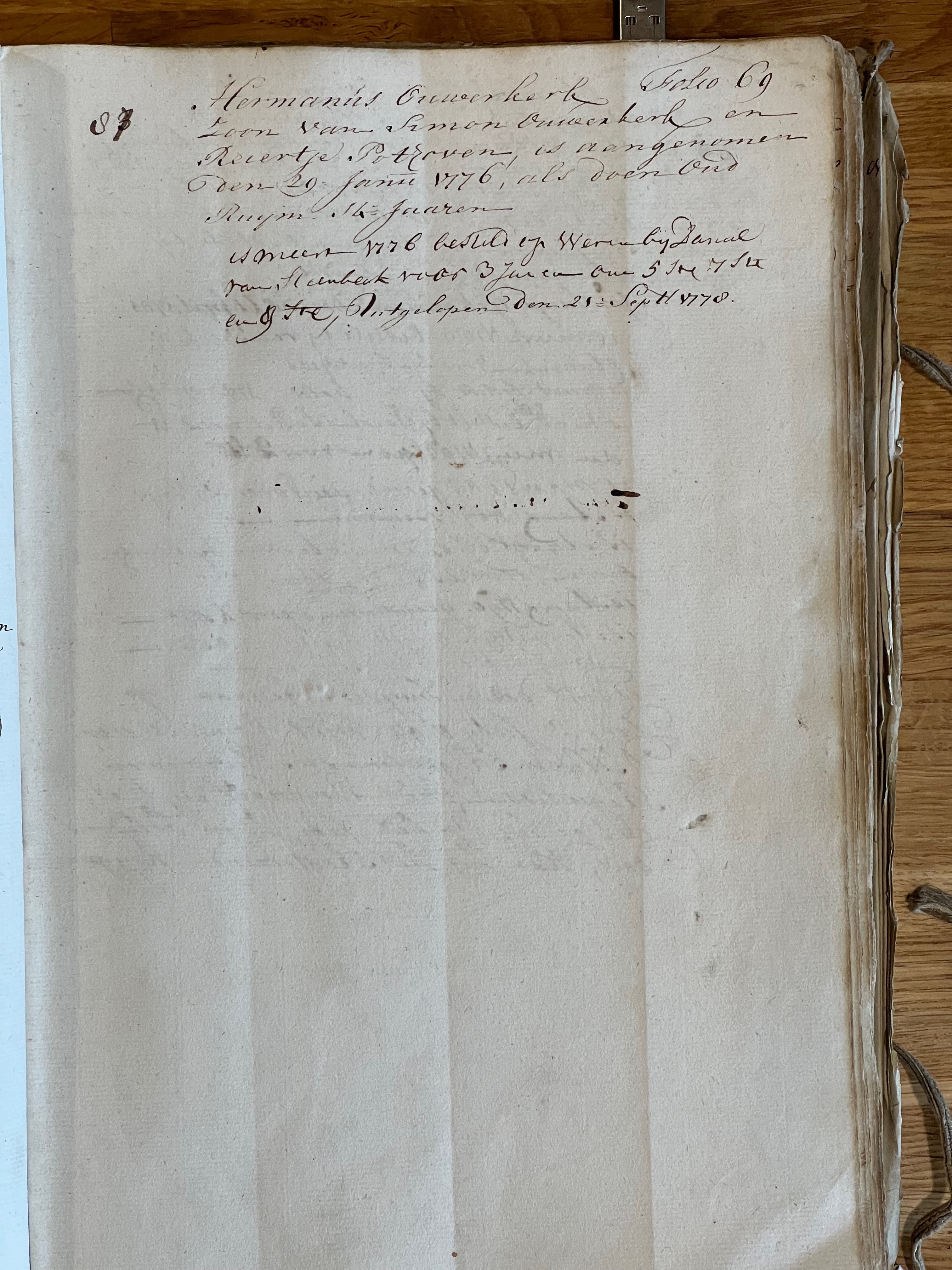 Their third son Hermanus Ouwerkerk was born in 1761. In 1776 he went to the stadskinderhuis orphanage. Then he became a soldier.