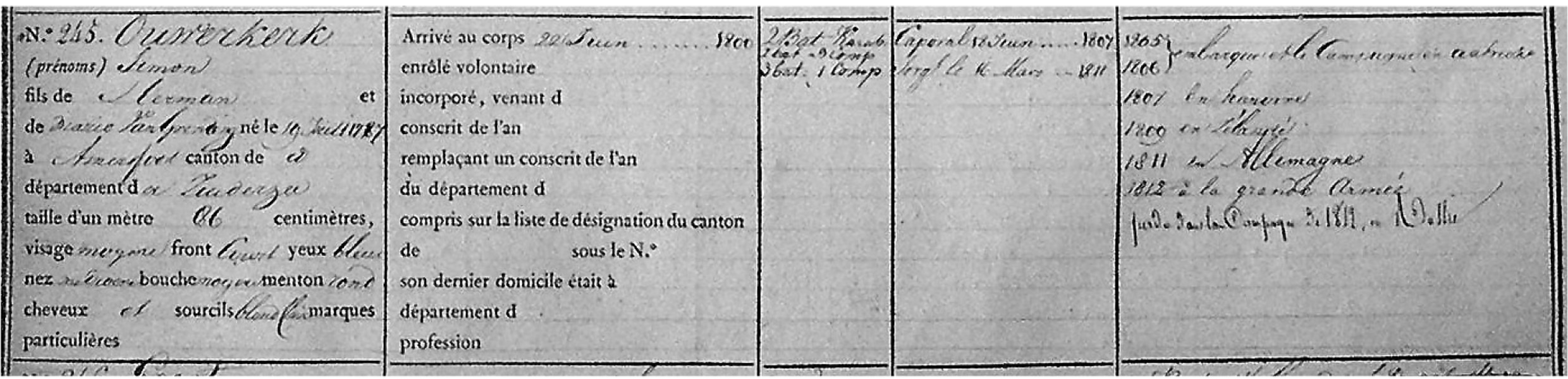 In 1812 Simon survived the Russian campaign of Napoleon as a member of the French 33rd regiment of light infantry.