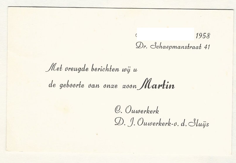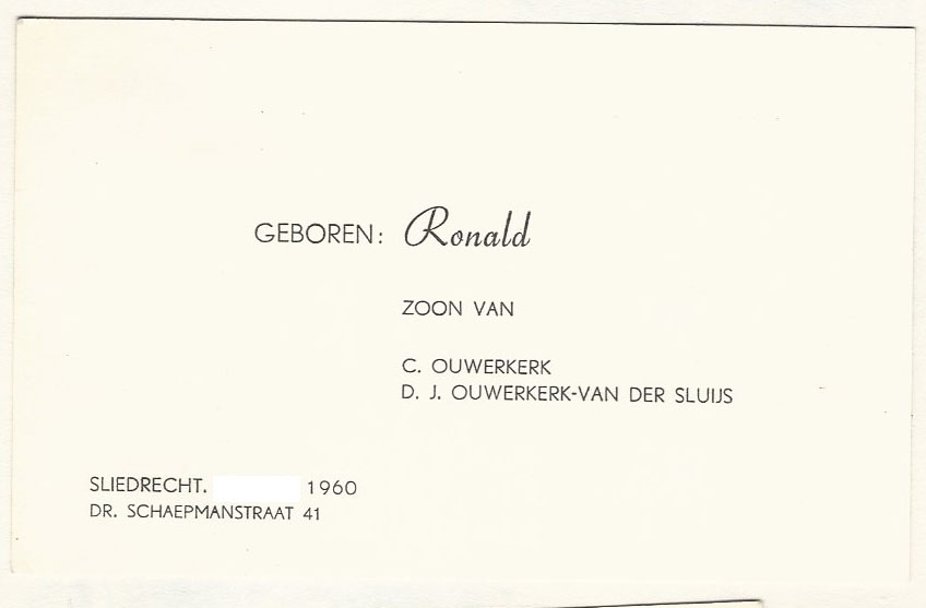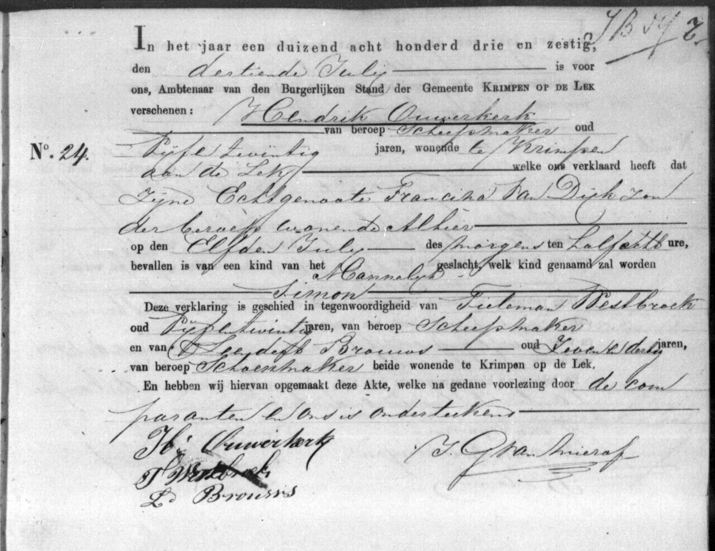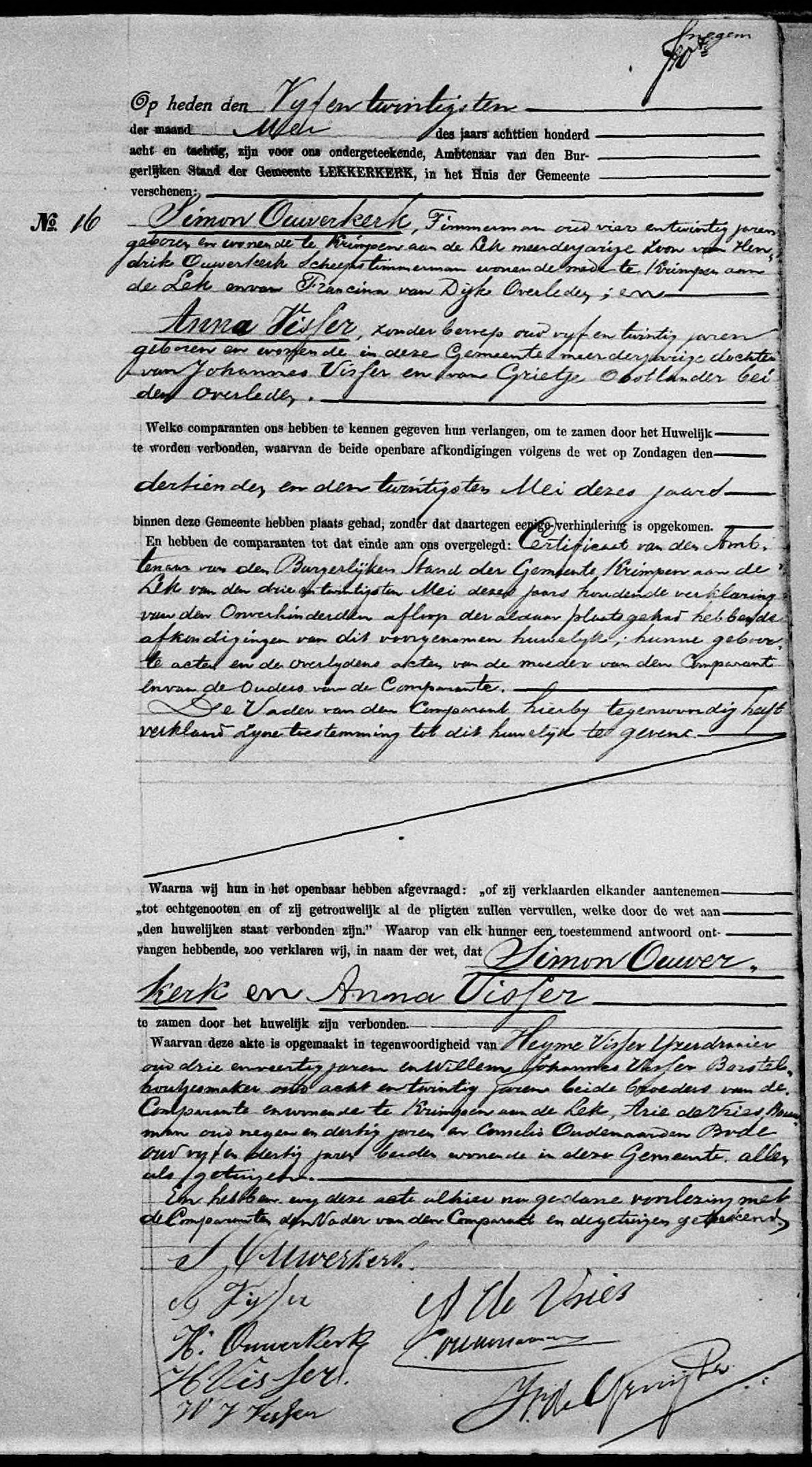 Their fourth son Hendrik Ouwerkerk was born there in 1838. Hendrik, who was a ship builder, married Francina van Dijk in 1862. Their only child Simon Ouwerkerk was born in 1863.