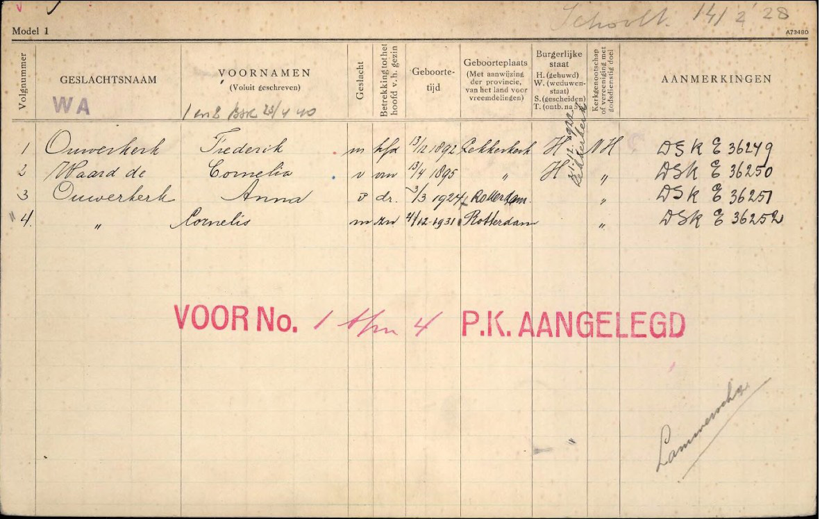 Simon, who was a warehouse manager, married Anna Visser in 1888. In total they got 13 children, of which third son Frederik was born in 1892 in Lekkerkerk.